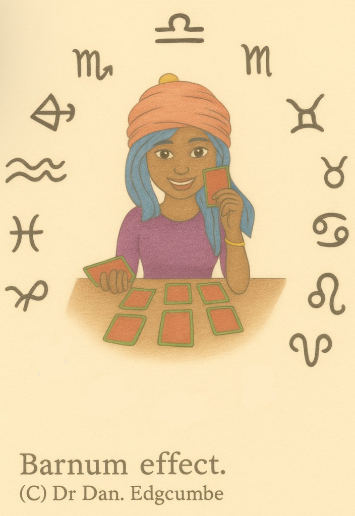 Fortune tellers providing generic and undetailed ‘fortunes’ to a customer e.g., you will meet someone with dark hair / more opportunities will be presented.