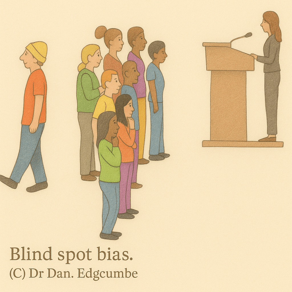 The blind spot bias is the tendency to recognize the effect of cognitive biases in others, whilst failing to see the impact of these biases in our own decision-making.