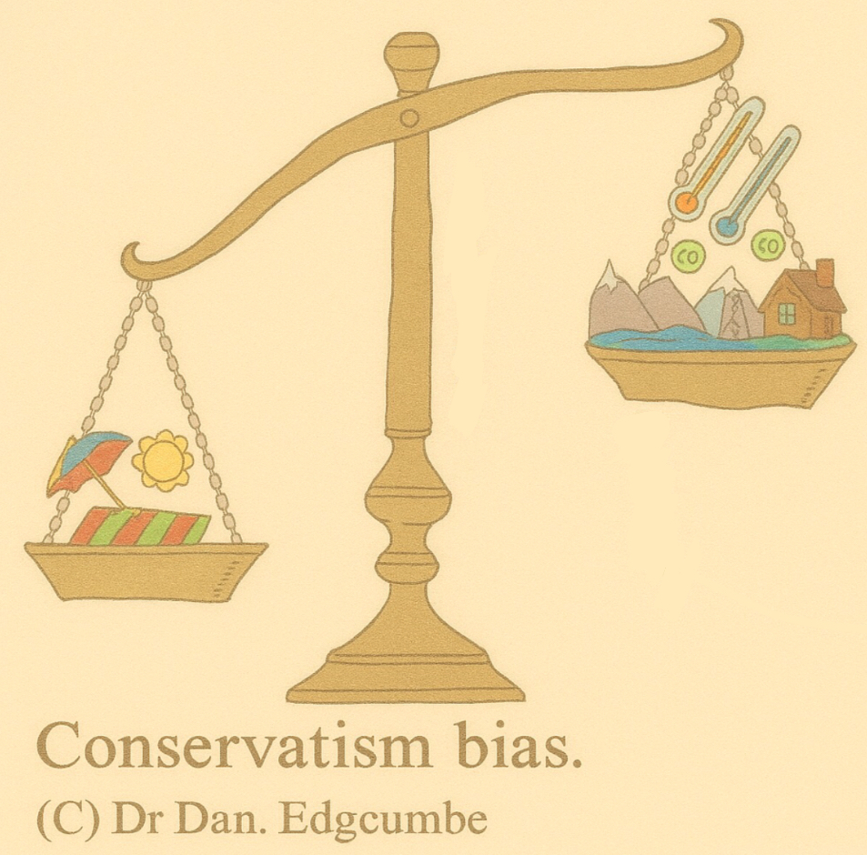 The conservatism bias is the tendency to revise one’s belief insufficiently when presented with new evidence. In doing so we over-weigh the importance one’s belief (the base-rate) and under-weigh the new evidence.